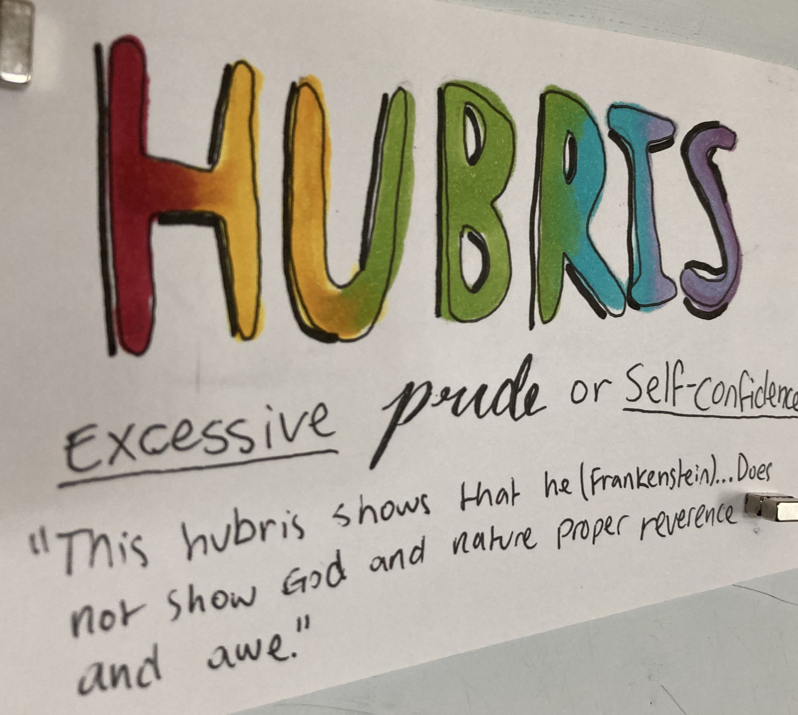 - Hubris – n. Excessive pride or self-confidence