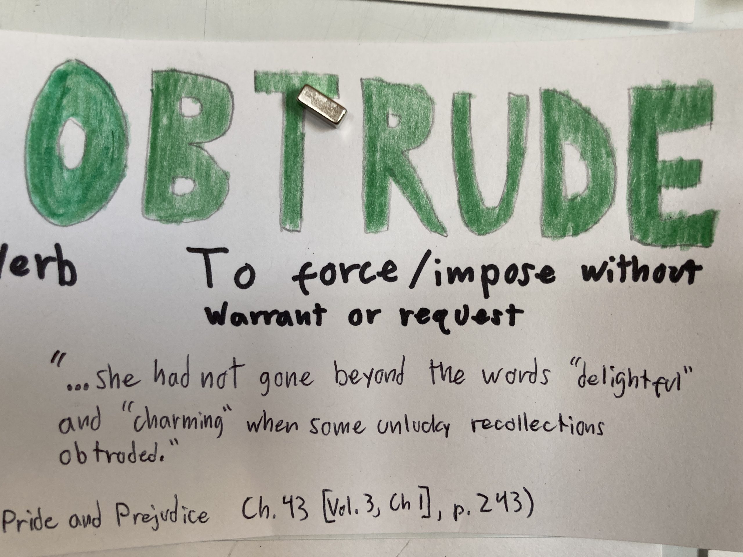 - Obtrude – n. To force/impose without warrant or request.