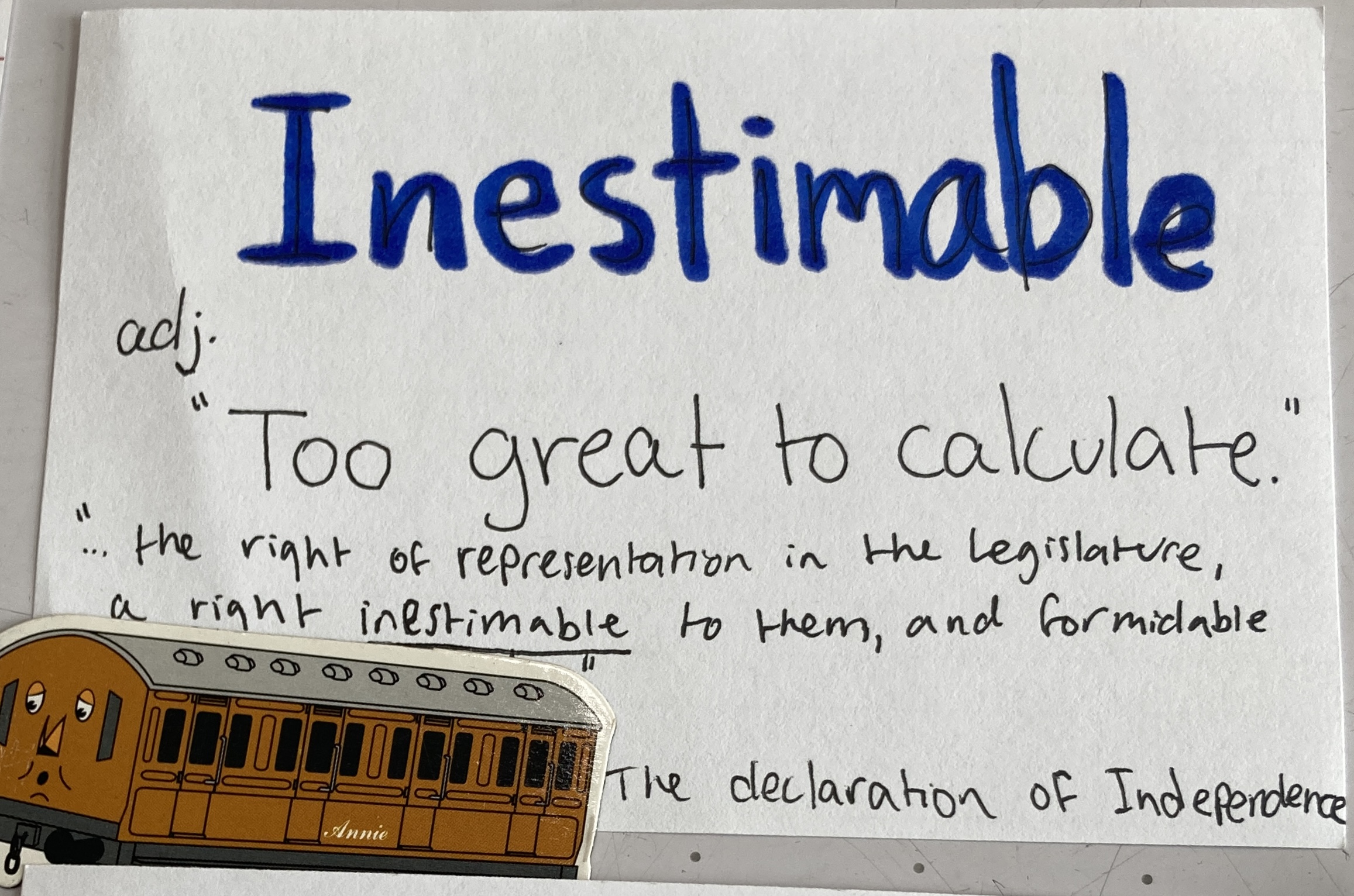 - Inestimable – adj. Too great to calculate.