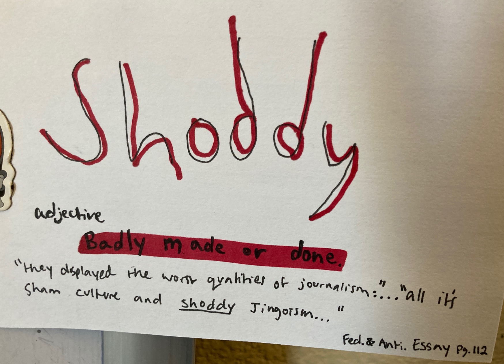 - Shoddy – adj. Badly made or done.