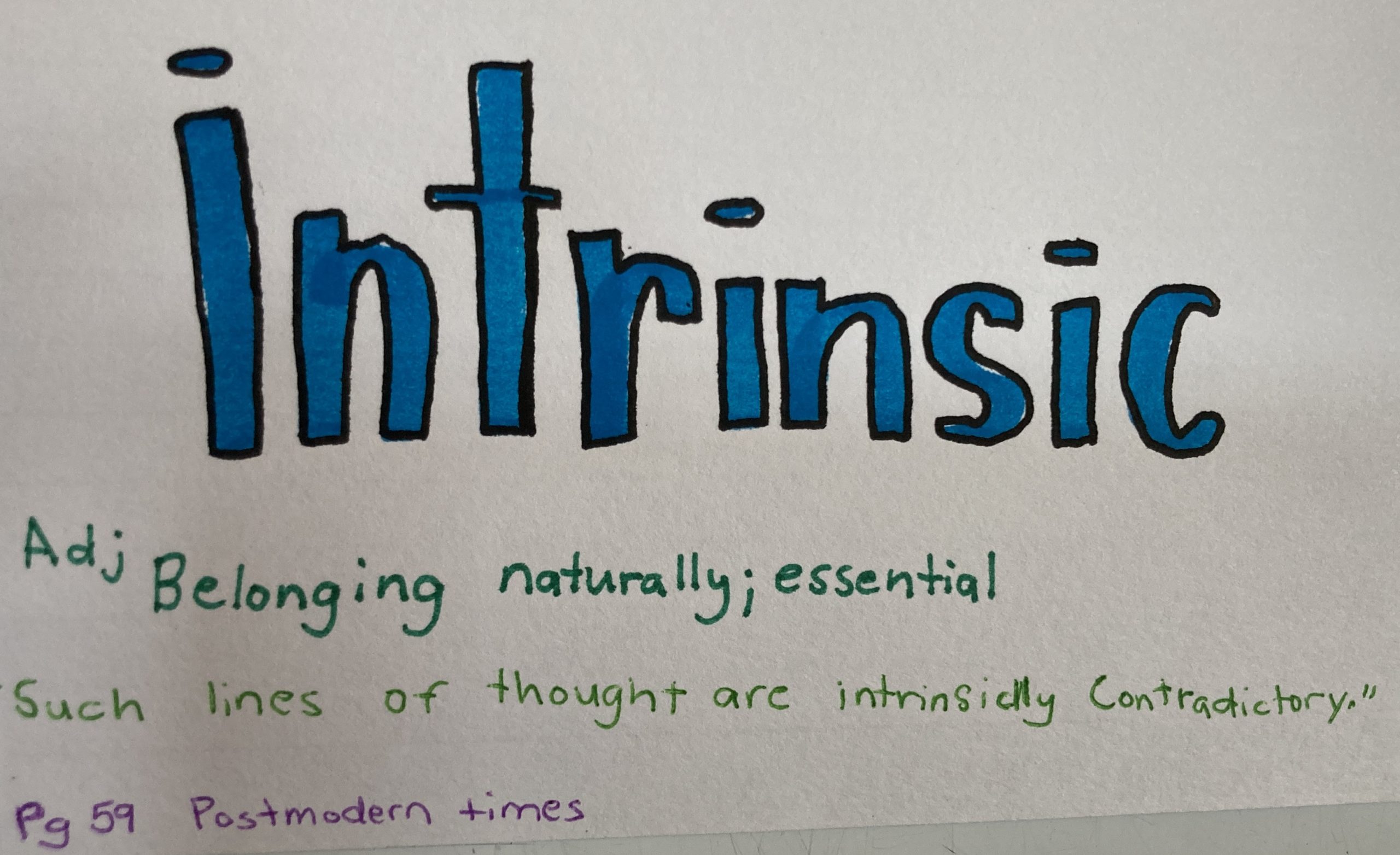 - Intrinsic – adj. Belonging naturally; essential.