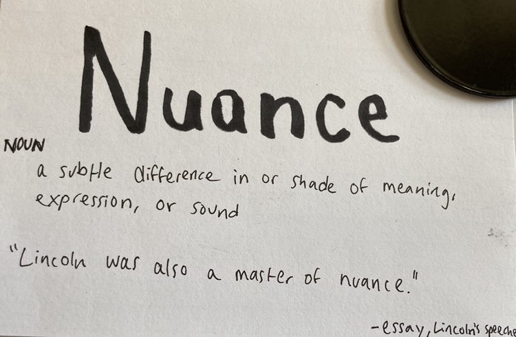 - Nuance – n. a subtle difference in or shade of meaning, expression, or sound.
