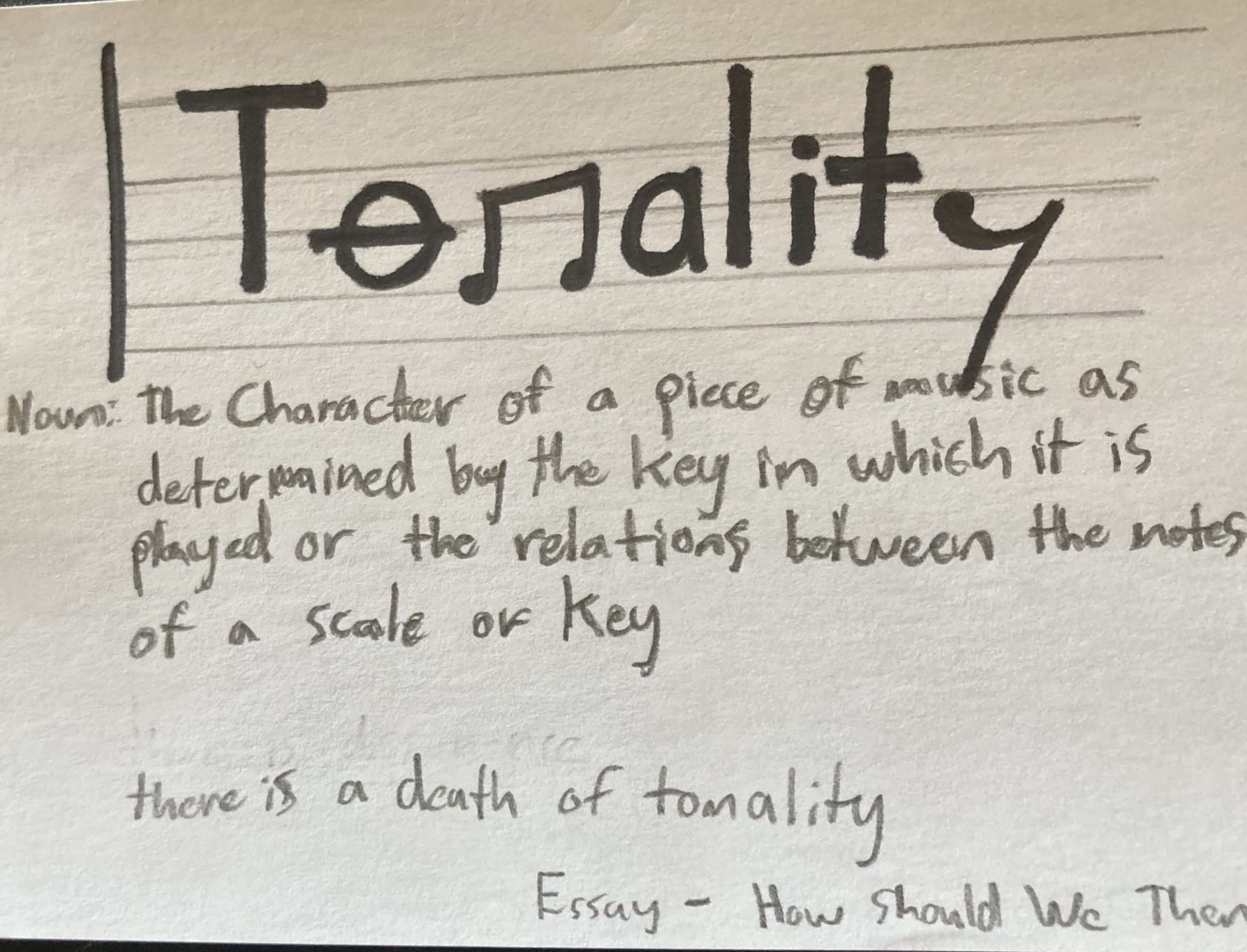 - Tonality – n. The character of a piece of music as determined by the key in which it is played or the relations between the notes of a scale or key.