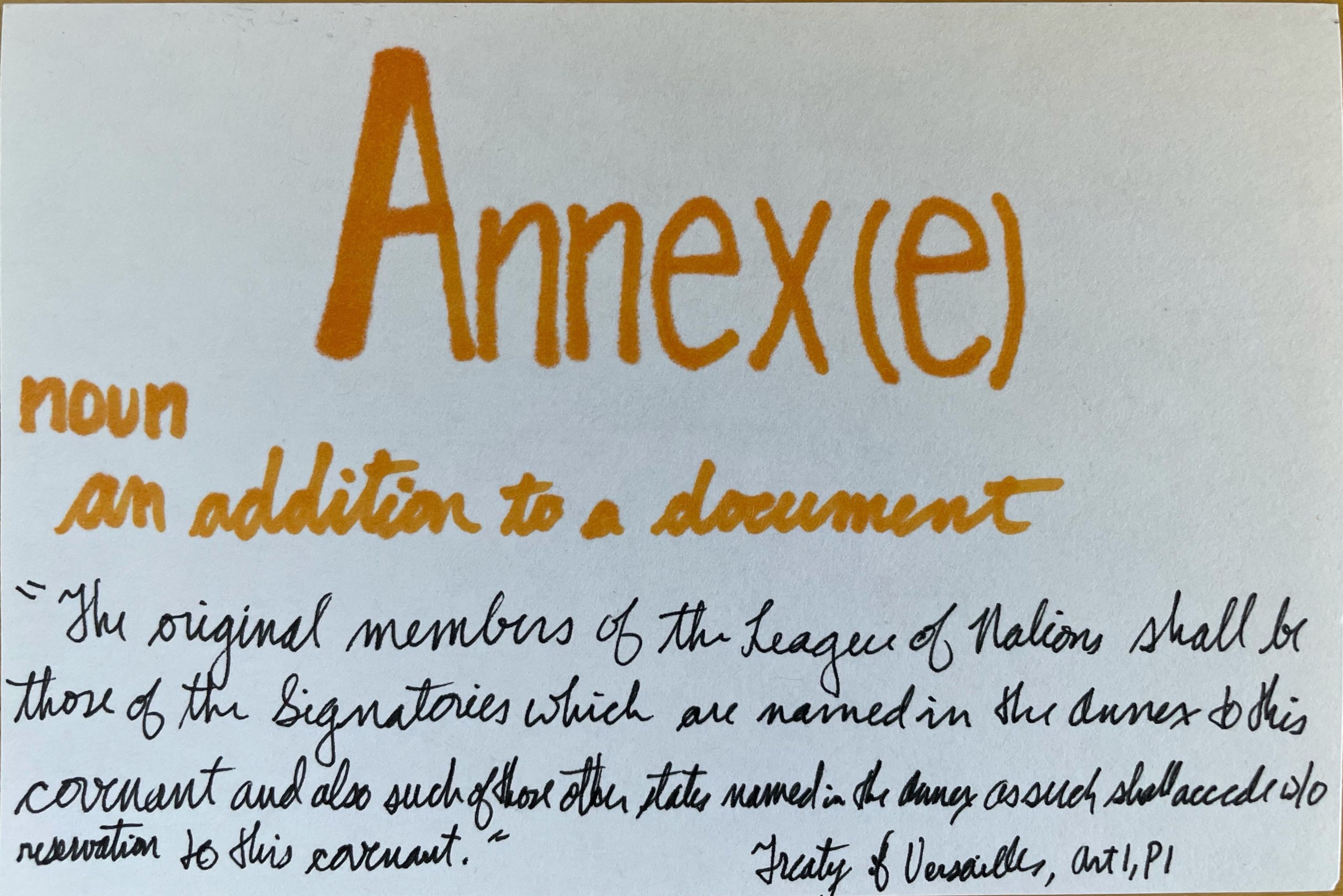 - Annex(e) – n. An addition to a document.